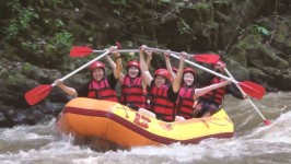 We will pick you up from your lobby hotel with full air conditioner transportation and escort you to start point at Carangsari village. It takes around 45 minutes drive to get there. On arrival at start point, our staff will welcome you with welcome drink like, coffee, tea and mineral water. Then wearing all the safety equipment and our professional rafting guide will give you short briefing about safety and what should you do during this adventure. Let start the adventure, let it flow, paddle and having fun. Pass some natural jump, great valley, wall carving and local people daily life. Stopping at the rest area in the middle of the journey and relax on natural waterfall. Finish our 2 hours adventure, have shower, change your cloths and relax over a tasty lunch in our restaurant. Then our driver will take you back to your hotel.